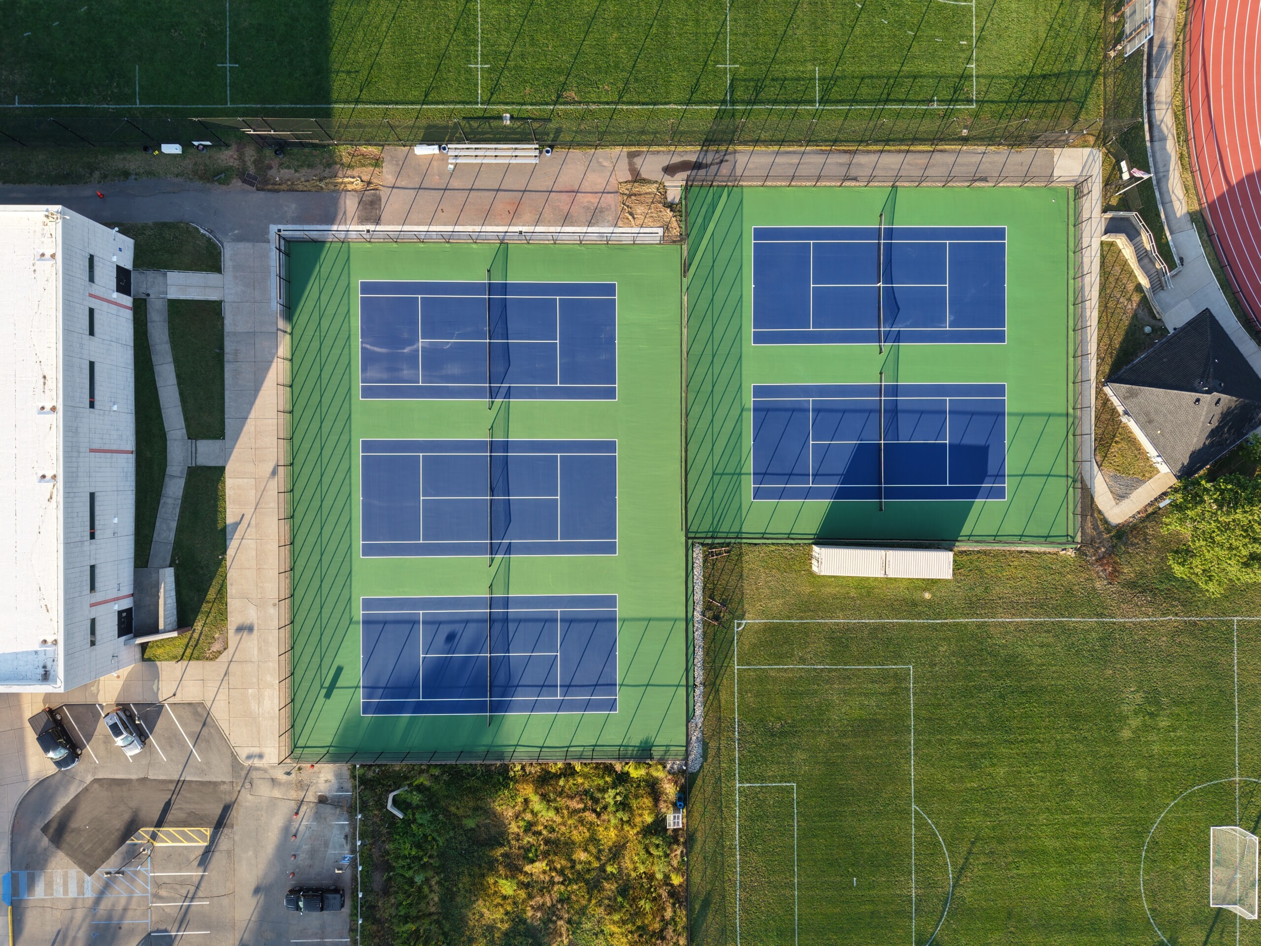 Key enhancements to the athletic facilities include “Shock Wave” technology for enhanced player safety and reduced risk of head injuries; Ball stop netting for improved game management; Stormwater management improvements to ensure long-term field durability and performance. In addition, American Athletic replaced the school’s tennis courts and installed new adjacent stormwater inlets to improve drainage at the site.